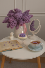 De lavendelgeur vult de kamer met een kalmerend aroma dat ontspanning en sereniteit uitstraalt — ideaal voor een rustig avondmoment, meditatie, in de slaapkamer of als verfijnde decoratie.